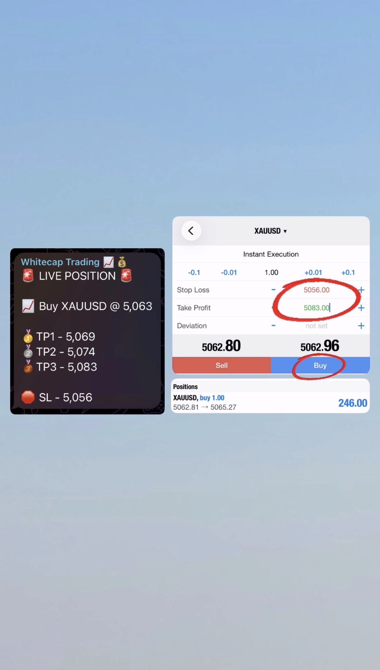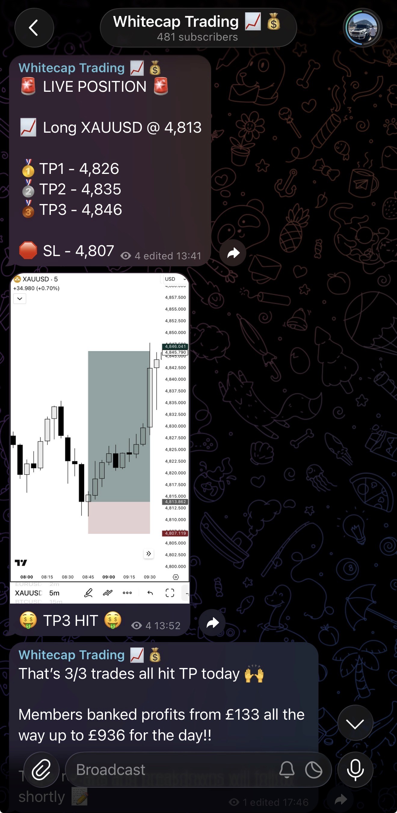 I share my exact entries, stop-loss and take-profit levels in real time. You simply place the same trade in your own account.